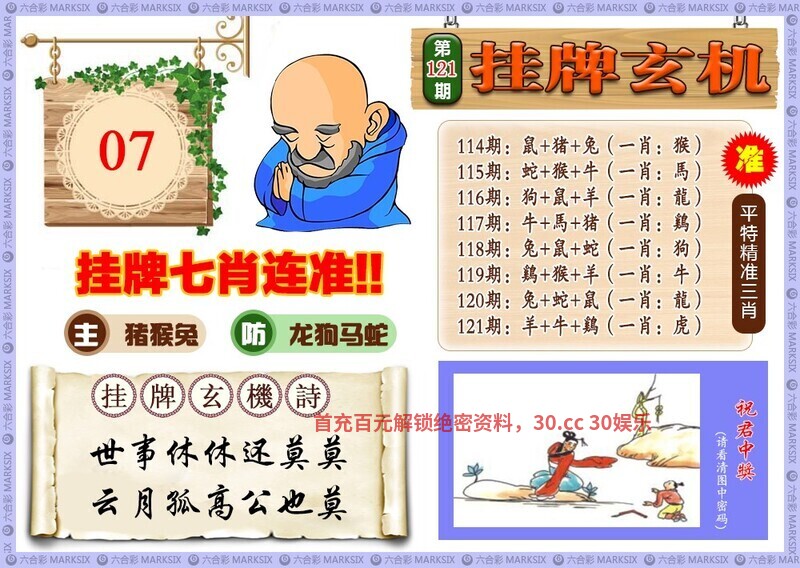 ◎开奖日必开生肖→→戊戌:马虎龙猴猪羊